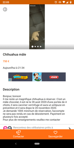 Et elle insiste en plus la bougresse, à peine retirée à peine republiée... Pour ceux que ça intéressé c'est par ici. https://www.leboncoin.fr/animaux/1850177805.htm