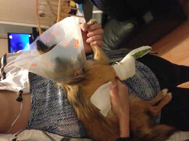 Mon ami l'a emmené car j'ai été travaillé. Je n'étais pas sur les lieux mais mon ami m'a dit que quand le vétérinaire l'a touché elle pleurait, alors il lui a donné un médicaments pour le touché et pour faire les radios.