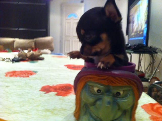 Elle est magnifique la petite chihuahua noir et feu :O ♥