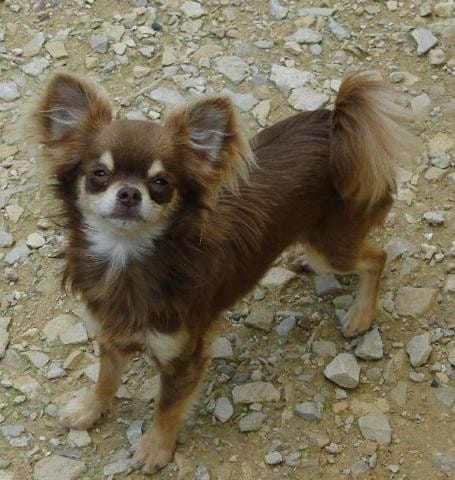 Voici la mère inaya de bientôt 2 ans Et qui pèse 3 kg, elle est de couleurs fauve charbonnè merlè à poil mi long