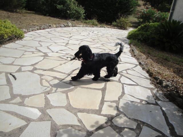 Alors voilà, elle a 2 ans, bientôt 3 (ça passe trop vite!), c'est une femelle cocker anglais joyeuse, hyper affectueuse: un vrai pot de colle! Super gourmande, très intelligente, elle a beaucoup d'énergie. Elle n'est pas toujours très sociable avec les autres chiens, mais c'est un amour avec les autres personnes (surtout les enfants).