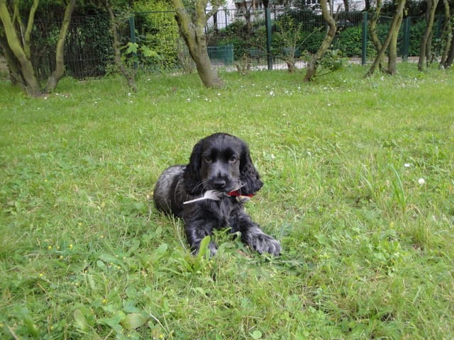 Alors voilà, elle a 2 ans, bientôt 3 (ça passe trop vite!), c'est une femelle cocker anglais joyeuse, hyper affectueuse: un vrai pot de colle! Super gourmande, très intelligente, elle a beaucoup d'énergie. Elle n'est pas toujours très sociable avec les autres chiens, mais c'est un amour avec les autres personnes (surtout les enfants).