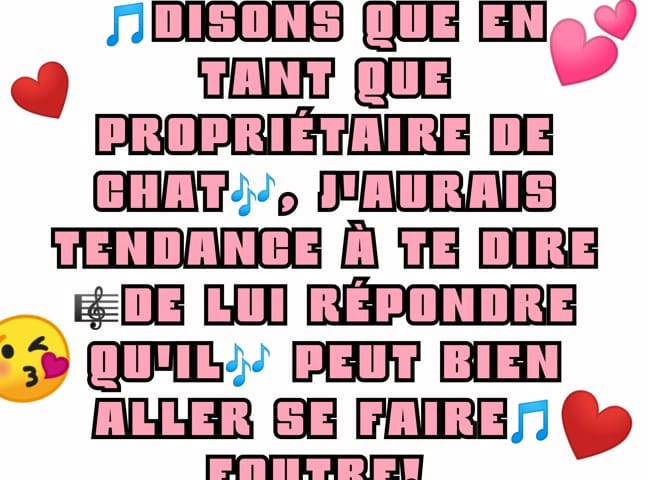 J'ai proposé au voisin de faire des séances de socia entre les deux et cela implique un investissement temps en commun et la présence de chacun. Mais il est pas chaud et grosso modo, il me dit un peu de façon masquée : "démerde toi pour que ton chien n'aboie plus sur mon chat". Bon je suis pas encore allée au clash vu que je trouve très très moyen cette façon de réagir.