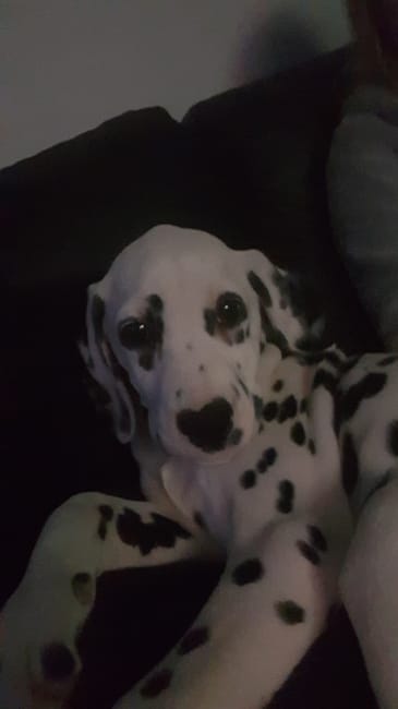 Nous venons d'accueillir une jeune chienne dalmatien, elle n'a pas trop apprecié le voyage, elle a vomi ses croquettes de la journee.