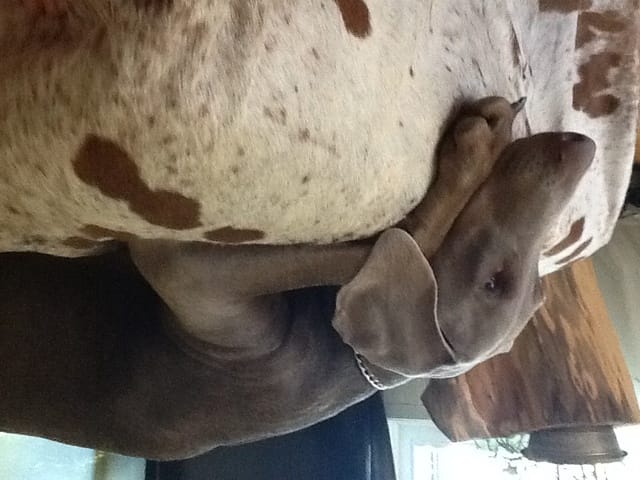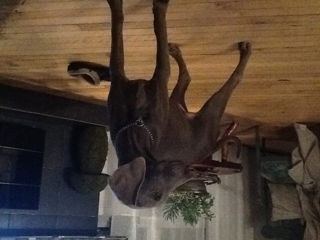 Je doute parfois de l'origine de certaine robe, je m'explique: regardez mon chien, sa robe est d'un bleu remarquable avec des zones feu...... Mon chien est croisé doberman et braque de weimar et pourtant on dirait bien un Doberman. ;)