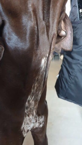 Pour être plus concrète, ci joint la photo du cou de mon chien qui supporte ce collier, je ne vous ai pas fait de photos de ses pattes, mais je peux vous assurer qu’il les fout dans un état pas possible lors de ses escapades.