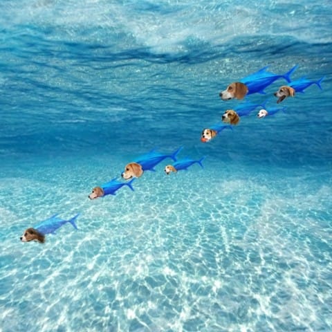 7. J'ai envoyé une photo modifiée (par moi) d'un banc de poissons à tête de beagles