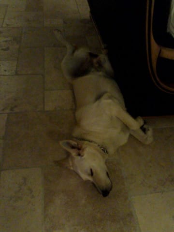 Moi elle s'appelle snow , elle a 1 et demi , c'est une femelle et elle est épagneul breton croisé labrador retriever