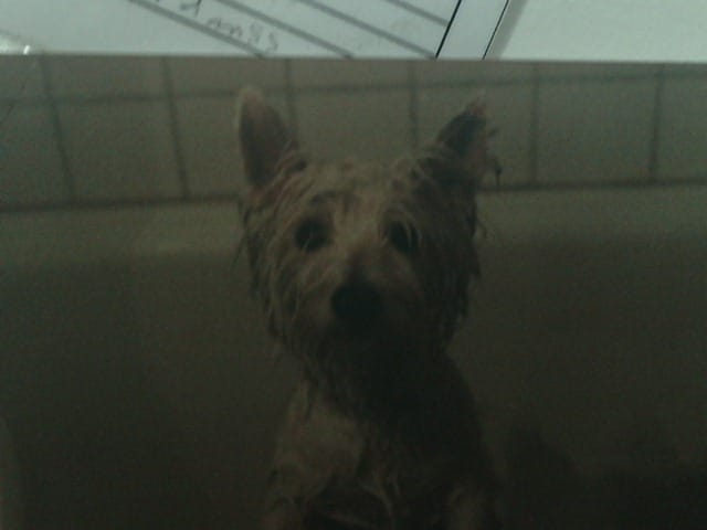 et voici sami mon chien mort a causse des tikes il a etait recuperai a la spa et ne fessait que des betise et voici un photo quant il prend la douche