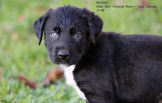 Par contre, sur le 2e les yeux sont vairon ou c'est un reflet? Si oui, alors il y a un chien à marquage facial dans ces ancêtres, comme le husky, malamute, ou autre.