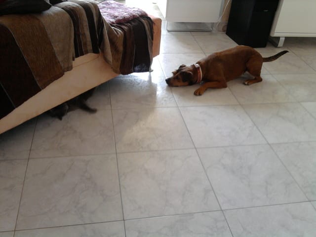 moi il y a toujours des bagarres et des griffures. 30 fois moins violentes qu'au début! Mon misanthrope de chien a dû s'ouvrir à un autre animal. Mais la particularité de mon chat c'est qu'il n'a pas peur du gabarit de Chukkles. C'est fou!