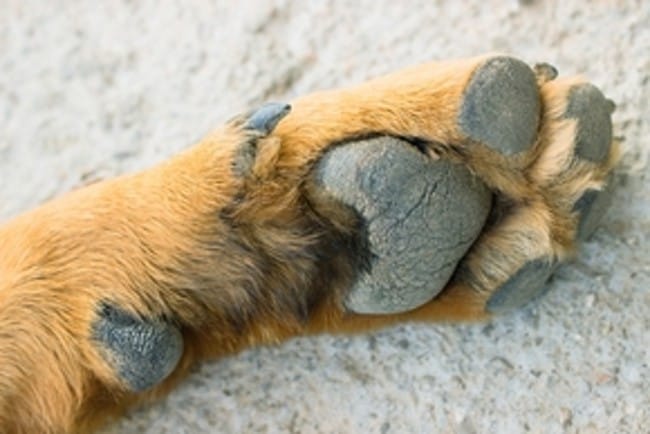 (sur l'image du chien on voit aussi un peu le coussinet du pouce ou ergot, mais c'est caché par les poils)