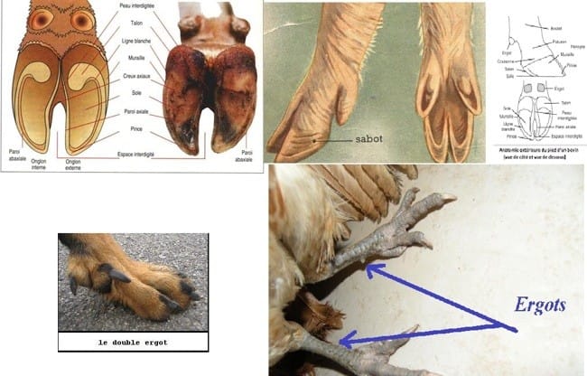 Le mot ergot change de sens et désigne le pouce du chien. C'est pas très cohérent en fait parce que je trouve que le "coussinet carpien" ressemble vachement à ce qu'on appelle ergot chez absolument toutes les autres espèces.