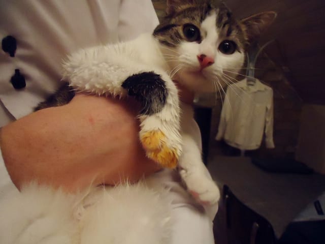 Kiara qui avait mis la patte dans le thon tomate... LOL