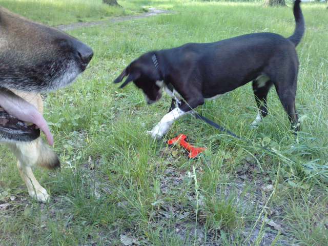 Deux chiens se promène .Tout à coup l'un deux se mets à fretiller: