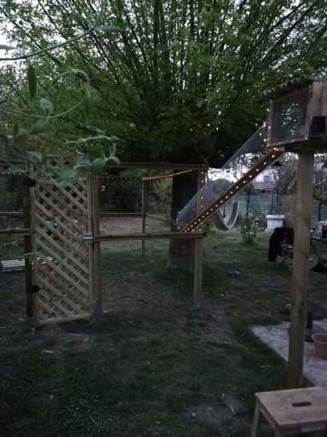 Depuis quelques jours nous nous activons beaucoup au jardin pour construire une chatterie, en effet avec le petit Shamrock qui va arriver, deux chiens et deux chats dans notre vieille petite bicoque à retaper ça va faire trop et risque de stresser les chats. Ils n'ont pas le droit de sortir puisque l'une a déclaré une maladie auto-immune et s'en sort à peine et l'autre est un téméraire fou qui risquerait de se prendre une voiture lors d'une exploration un peu trop aventureuse.