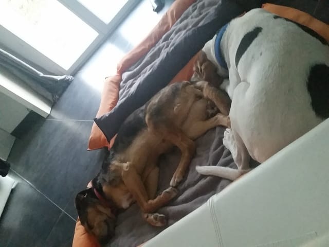 Ça fait 12 ans qu'on a adopté Vicky d'un refuge du coin. Cette chienne est un petit miracle, elle est revenue de loin. Dernière d'une portée à la rue, elle est la seule survivante, malgré les nombreux problèmes psychologique et physiologique qu'elle a pu rencontrer.