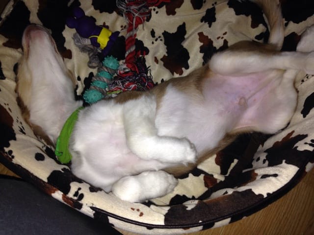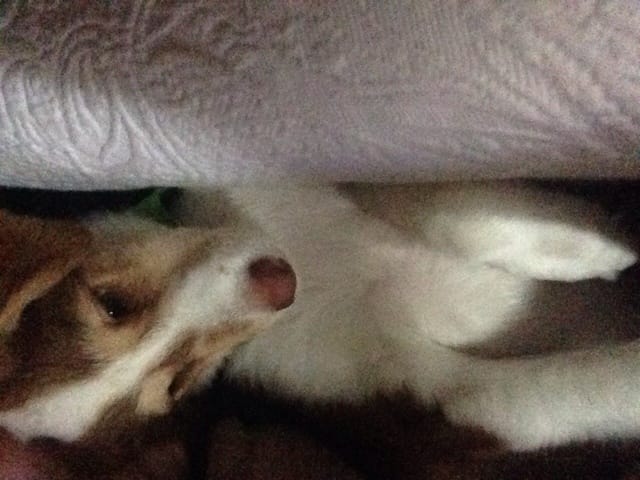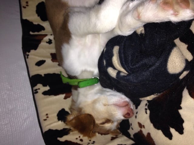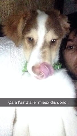 Je suis parti en vacances au Portugal cet été, il se trouve que j'ai récupéré un chiot dont la mère est décédée. La propriétaire voulait le tuer (je la soupçonne d'avoir tué la mère... --'). J'ai récupéré le chiot et l'ai ramené en France. Je l'ai nourri au biberon car il n'était pas sevré, je l'ai emmené chez le véto qui l'a vermifugé et traité contre les puces. On a estimé son age a 7 semaines environ. Aujourd'hui il pète la forme et mange des croquettes!