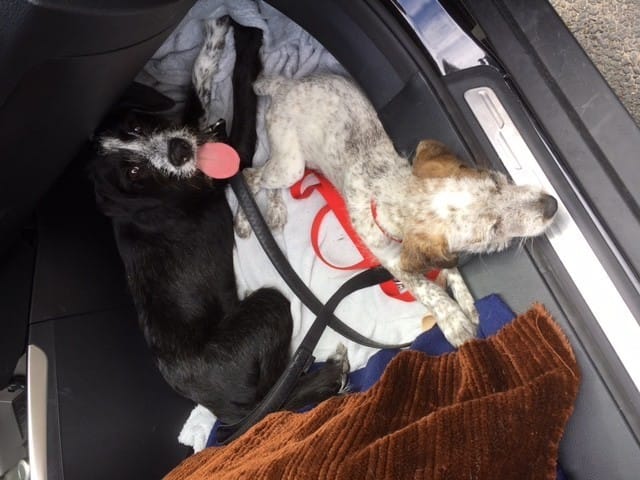 Chiots malades en voiture