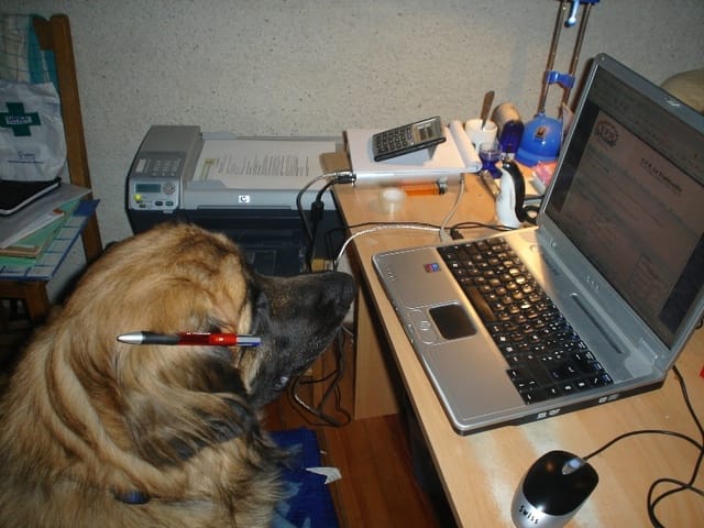 Du moins je crois avoir compris que quand ils amènent leur collier c'est pour sortir, leur gamelle c'est pour manger, et que quand j'ai 70 kgs qui me débarquent dessus alors que je suis en train de répondre :