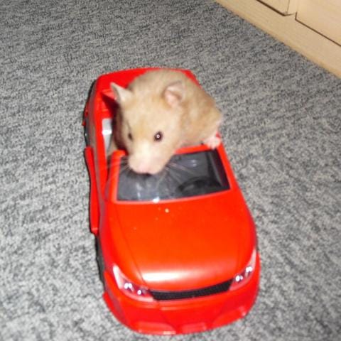 Confétie (mon ancien hamster) qui fait de la voiture ! ^^