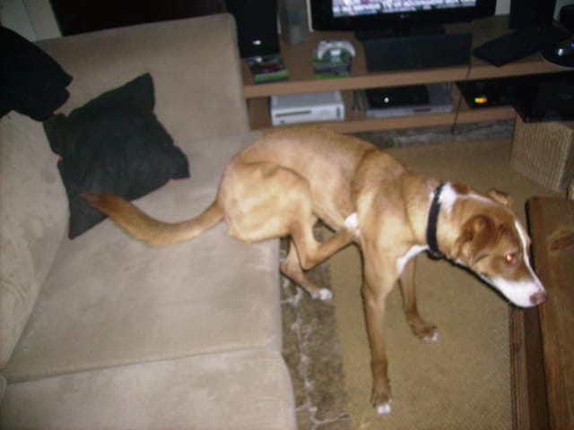 tobby qui se gratte et s'assois comme nous!!!