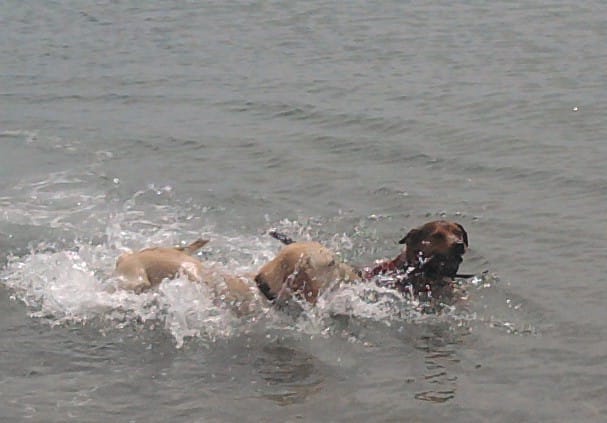 Alors voici Moon et Aiko ( le chien d'une amie ) qui tirent un bzton des deu coté ^^ qui va gagner ???!!!: