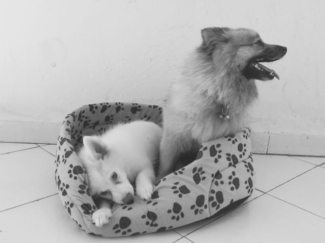 Bonjour ! Je vous prèsente Scamp et Daisy un Spitz Allemand et une Pomsky (Pomeranien croisée husky ) J'espère qu'ils vous plairont ! En passant vos chiens sont tous magnifiques