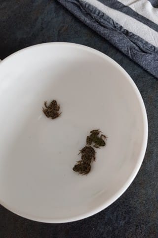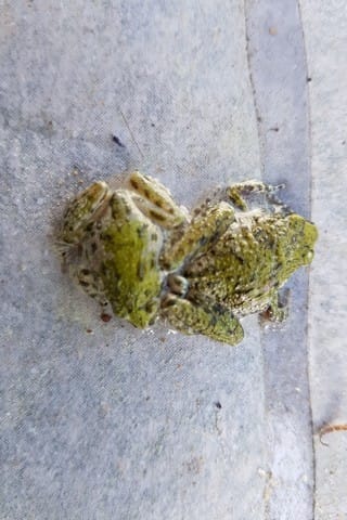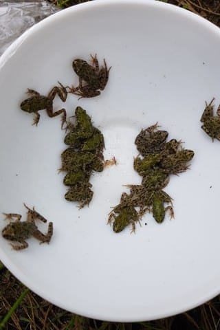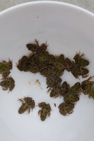 Bon que les amoureux des batraciens soient rassurés, on les a pas bouffé - en même temps ils/elles font - 1cm et on les a relâché dans un étang crée par la pluie dans le terrain derrière la maison😉