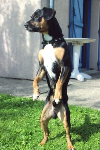 En tout cas la ressemblance est vraiment saisissante, je ne sais pas si c'en est mais en tout ça ne m'étonnerais pas qu'un de ses proche parent en soit un. Parce que si je m'en réfère au standard du Bouvier d'entlebuch, il est dit que son poil est "court, épais, adhérent, dur, brillant" (comme le tien) qu'il est "noir avec des taches allant du jaune au fauve et des taches blanches sur le poitrail, sur la tête et sur les pieds" (dans ton cas il lui manque juste la tache sur la tete) qu'il mesure de 40 à 50 centimètres (le tien 38) et qu'il pèse entre 15 et 22kg