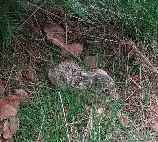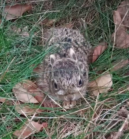 Je ne retrouve pas le terrier. Par contre je trouve un petit lapin du même âge ! Peut-être celui qui n'était pas rentrés au terrier er qui s'était baladé un peu plus loin... Peut-être un autre.