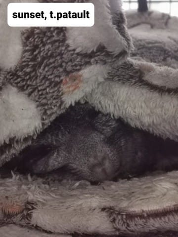 Je me précipite, et je remarque que le petit lapin reste sur le dos un moment... La j'ai touchée. Inquiète. Je le poussait doucement pour le mettre sur le flanc et voir s'il ce relevait.