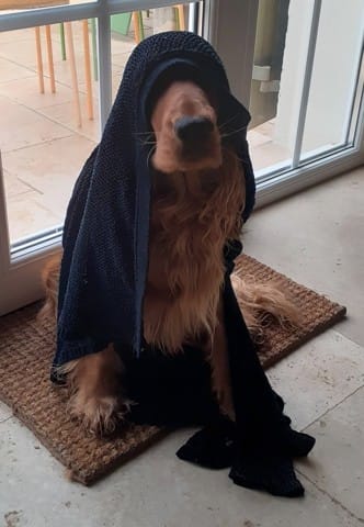 Bon voici l'originale, c'est un peu moins glam mais rigolo. Il récupère mes vieux vêtements et celui ci pas encore déchiqueté, le gêne quelque peu pendant le jeu :)