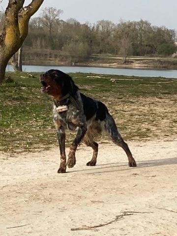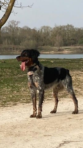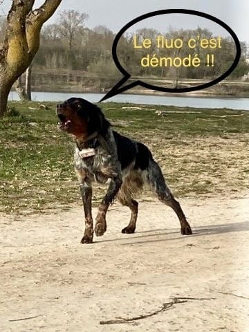 Qu'est ce qu'il est beau quand même ce Athos ! J'ai jamais vu d'epagneul breton en vrai, du moins pas avec cette partie arlequin et la tête noir-feu !