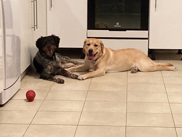 C'est dingue comment les deux chiens ne s'arrêtent jamais de jouer à la bagarre ! Enfin, je dis ça mais pendant la soirée on a quand même pu observer pour la première fois quelques moments (de moins de 5min mais bon) où ils se posaient un peu !