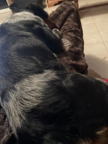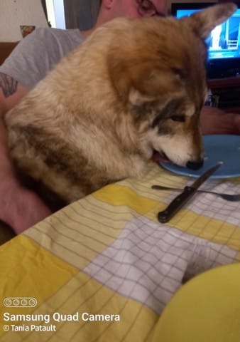 Le reste de la journée il n'est pas si collant, il vient de temps en temps mettre la tête sur les genoux mais sans plus. Aussi il est devenu trop gros, je peux plus le prendre comme avant pour faire un câlin.