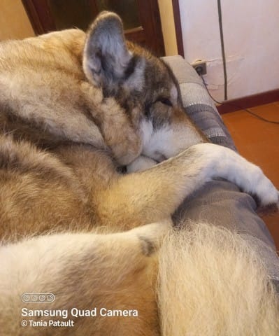 Aaah les léchouilles de Jyrkhos ... Vu sa taille il n'a pas besoin de faire de grands sauts, il te mets les pattes sur les épaules et t'as le débarbouillage gratos ! 🤭