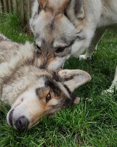 Ho qu'il est heureux ce louloup là ! qu'est ce qu'il pourrait bien laisser penser avec leur regard de chien penaud !