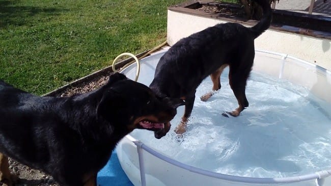 C'est une amie qui m'a donné cette piscine. Idem, elle l'avait prise pour son Boxer et son Beauceron mais ils n'étaient pas passionnés. Ma follette va dedans mais évidemment, rien ne vaut un bon étang ou une bonne mare qui sentent la vase!!