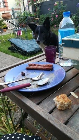 Hier y avait un vieux chat qui avait l'air perdu ou abandonné, il tournait en rond devant chez moi. Odin était dingo ! En plus le chat n'avait pas peur du tout, il venait comme pour faire un câlin au chien !