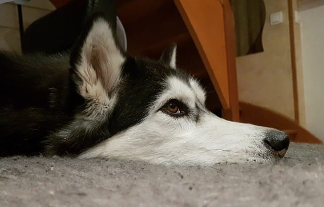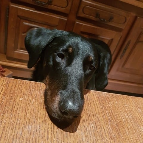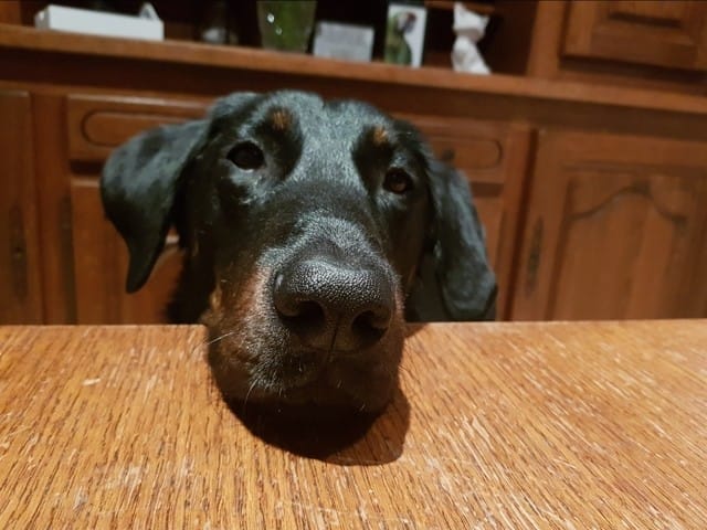 J'ai le même avec la truffe sur la table et les yeux qui regardent ce qu'il y a d’intéressant, bien sur c'est jyrkhos, lui attend ; génésys vole dès qu'on a le dos tourné