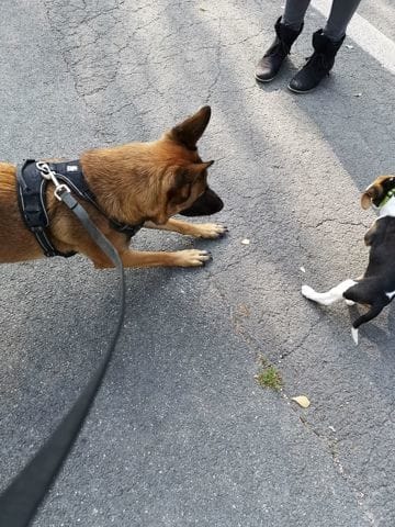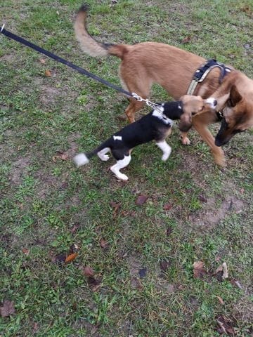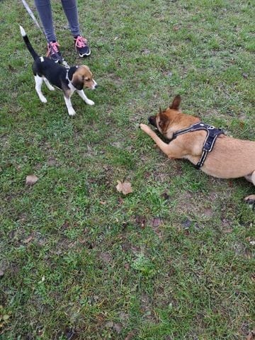 Comportement de Nouchka avec un petit beagle de moins de 3 mois: