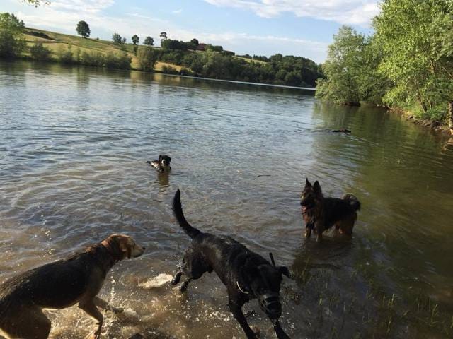 Il y a quelques années j'ai eu le luxe de faire une balade totalement imprévue avec.... Plus d'une dizaine de chiens !!! Rottweiler, American Bully, Grand Bouvier Suisse, Bulldog Anglais, Aussie et des Croisés... J'avais mon Dobermann et ma Malinoise. Cette énorme meute sans laisses, sans contraintes à évoluer au milieu des promeneurs sans aucune agression, sans conflits sans accroches. C'est là que je me suis rendue compte que ma chienne aussi odieuse soit elle était capable d'être aussi parfaite que je le souhaitais parmi d'autre chiens.
