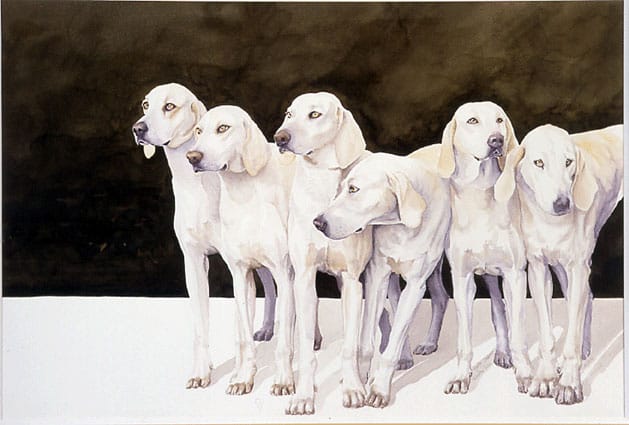 Elle a le nez rose, et est très chasseuse, elle se met très bien a l'arret. Elle adore également nagées.