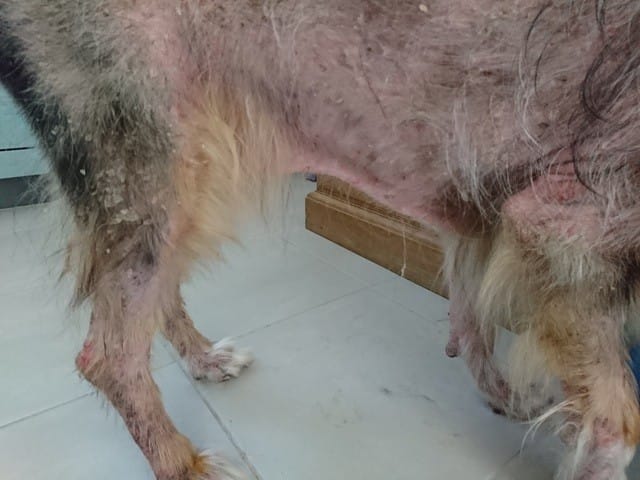 Je ne me rappelle pas avoir vu ce genre de descriptions dans les articles sur la gale; je me dis que c'est peut-être parce qu'il n'a plus ses poils pour retenir tout ça? 🤷 (même si ça me semble étrange)