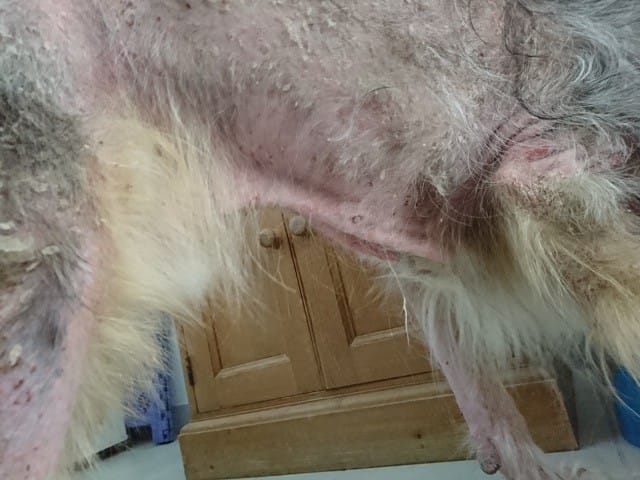 au vu des photos, je ne vois rien de spécial hormis l'état désastreux de sa peau. Pauvre pépére, il a vraiment dû morflé - tout ça pour une erreur de diagnostic. Les croûtes ont l'air vraiment peu ragoutantes, tu m'étonnes qu'il te faisait scène de crime en se grattant jusqu'au sang.