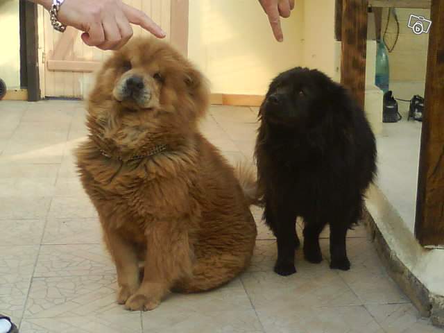 c'est un couple de chow chow , castrés, la femelle (noire) a 2 ans et le mâle marron (un vrai nounours) a 2 ans et demi ils sont inséparables et la dame les donne!!..ils sont sociables et très affectueux!!