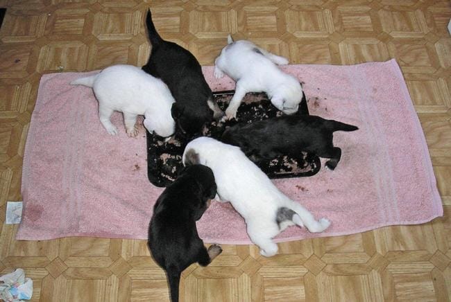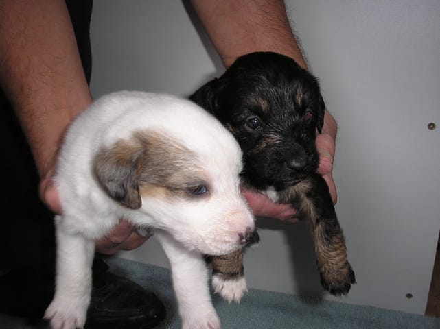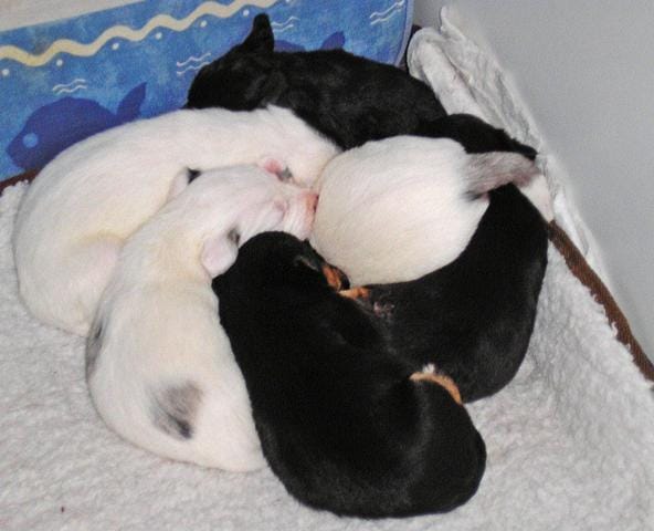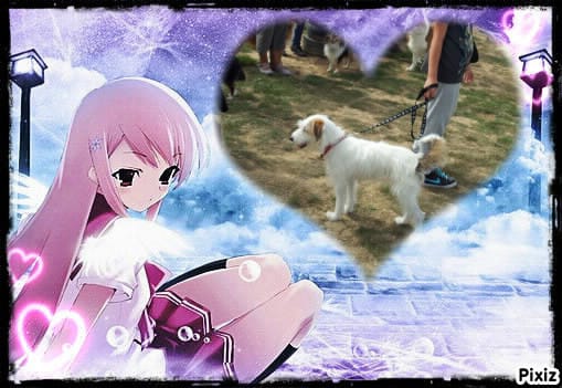 L'histoire commenca quand j'avait 8 ou 9 ans ( je c'est plus XD) Il y avait une poule dans les vigne que je voulait attraper, et elle était partie, alors ma mère proposer de prendre un chien que pour moi. Nous avons regarder sur le cite de la SPA et on va vue la photo d'un chienne que l'on connaissait, sont maître était mort et elle s'était échaper et a était récuperer pas la spa. Quand nous avons appeler, la chienne était déjà réserver, cc'était dommage et donc on commenca a chercher un autre chien. Mais on nous a rappeler pour nous dire que la chienne avait des petit , donc nous primes contact avec l'anglaise qui avait récuperer Lison , oui voila comment elle s'appeler, mais sa nouveller maîtresse l'appeler lizzi . Donc quand les petits son née elle nous a envoyer des photos , sur la photos j'avait déjà craquer pour ce petite truck blanc au bout de queue grise : photo quand elle était bébé :