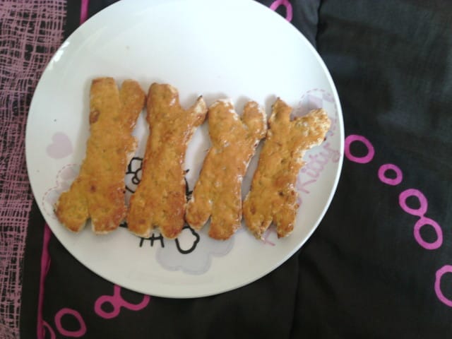 ingredients : tasse de farine,tasse de maizena, 3/4 d' d'une tasse d'eau,2/3 d'une tasse d'huile d'olive, tournesol ou pepin de raisin, et 2 sachet pour chat ou du thons si c'est pour un chat, et 2 sachet pour chien ou viande haché si c'est pour un chien.