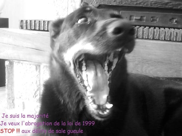 Etant dans le milieu cynophile depuis maintenant 4 années pleine, je fait partie d'un combat se battant contre cette loi afin qu'elle soit abolie ou radoucie !